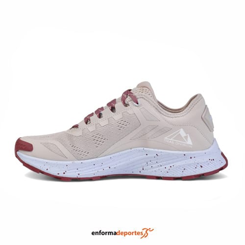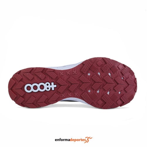 Zapatilla mujer +8000 TIGOR, corte es combinación de nylon y lycra con termosellados que evitan costuras, con forro interior de mesh que aporta confort y mayor transpirabilidad, construcción del talón y el empeine (tipo calcetín) para un mayor ajuste y su suela, que proporciona una gran amortiguación y que gracias a su diseño taqueado, nos aporta una tracción y un agarre óptimo.