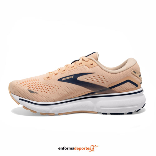 Zapatilla mujer BROOKS GHOST 15, confeccionadas en la parte superior de malla técnica Air Mesh, que garantiza comodidad y transpirabilidad con estampado 3D Fit, con amortiguación actualizada, con mediasuela incorpora la amortiguación DNA LOFT v2, más cómoda y ligera, con tecnología Segmented Crash Pad se combinan para un flujo sencillo entre el aterrizaje y el despegue del pie.