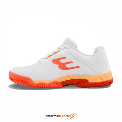 Zapatilla mujer BULLPADEL INDIGA, ideal para jugadoras de nivel iniciación o intermedio que buscan un calzado flexible, cómodo y con máximo agarre, gracias a su suela de espiga que garantiza una tracción excelente en cada movimiento, mientras que el tejido mesh altamente transpirable mantiene el pie fresco y ventilado.