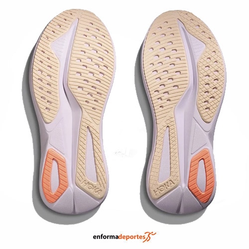 Zapatilla mujer HOKA MACH 7, fabricada en su parte superior de malla jacquard para una transpirabilidad localizada y un ajuste ceñido, con entresuela de EVA supercrítica actualizada para aterrizajes amortiguados con cuello extendido en la parte posterior para proteger el tendón de Aquiles, con lengüeta de malla fina con almohadillas acolchadas, parcialmente integrada en la estructura, plantilla extraíble y contorneada, sistema de cierre con cordones planos y ojales recubiertos de TPU y suela de caucho Durabrasion de alta tracción, optimizada para una mayor resistencia al desgaste en zonas críticas y un agarre excepcional.