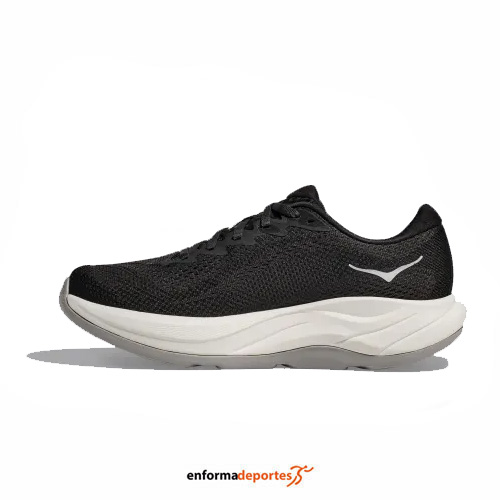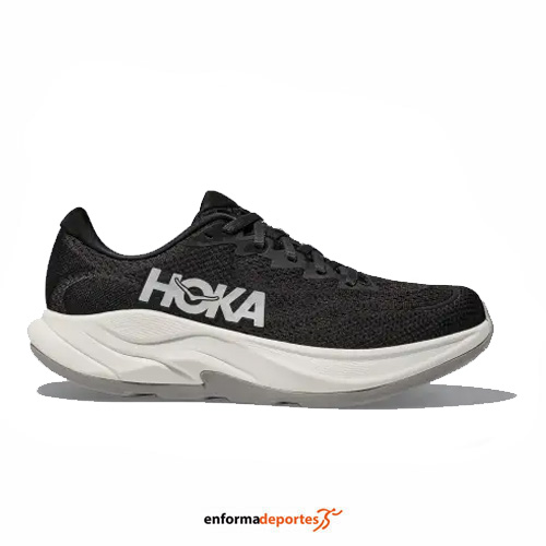 Zapatilla mujer HOKA RINCON 4, de pisada neutra, fabricada en su parte superior de tejido malla Jacquard técnico doble de una sola capa para mayor transpirabilidad, amortiguación baja, con lengüeta acolchada que permite calzarse la zapatilla con facilidad y comodidad, entresuela de dos capas de EVA con compresión completa, que proporciona la amortiguación exclusiva de HOKA, con estructura Active Foot Frame™ centrada en la parte trasera del pie, MetaRocker™ suave y suela exterior de estructura podular de EVA vulcanizada.