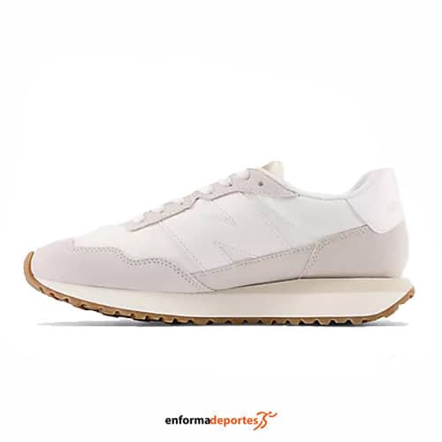 Zapatilla mujer NEW BALANCE 237, confeccionada en su parte superior de malla transpirable y ante, con entresuela de EVA extendida y protecciones, suela en forma ondulada.