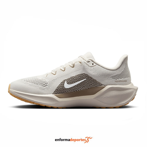 Zapatilla mujer NIKE PEGASUS 41, con su parte superior confeccionada en tejido de malla para mayor transpirabilidad, con lengüeta de malla más acolchada para evitar que los cordones molesten la parte posterior del pie, con inserciones de TPU en la parte superior que ayudan a que el pie permanezca siempre en su posición dentro del zapato, con cuello moldeado con acolchado ergonómico y espalda ligeramente alargada que soporta mejor el tendón de Aquiles, con detalles reflectantes y plantilla interna extraíble.