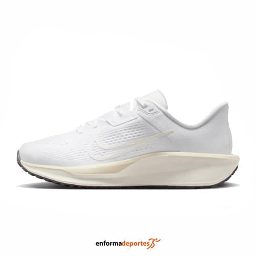 Zapatilla mujer NIKE QUEST 6, confeccionada en su parte superior Engineered Mesh para mantener la frescura, con sistema de sujeción de mediopié que combinado con el cierre con cordones, proporciona una sujeción extra, con unidad Zoom Air completa que te da energía, y es suave y cómoda, con espuma supersuave en la mediasuela amortigua el pie en cada pisada y suela exterior de goma aporta tracción para mantener los pies sobre el asfalto.