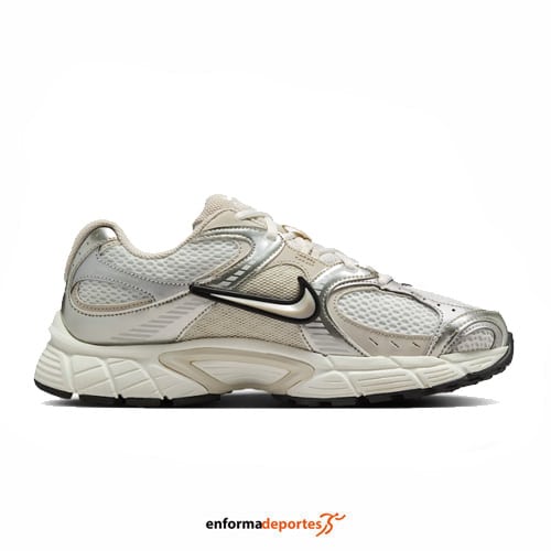 Zapatilla mujer NIKE V5 RNR, fabricadas en su parte superior de malla con revestimientos de piel sintética para ofrecer transpirabilidad y durabilidad, con mediasuela de espuma robusta y ligera, con forro suave en la zona del tobillo y mediasuela de espuma para proporcionar comodidad durante todo el día y suela exterior de goma con ranuras inspiradas en los 2000 para una mayor tracción; con detalles metalizados y el logotipo Swoosh en 3D.