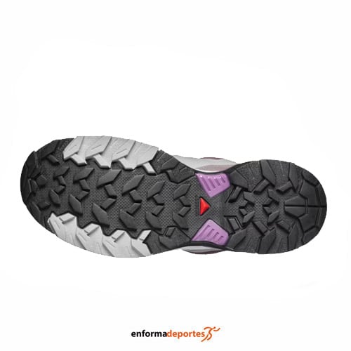 Zapatilla mujer SALOMON X ULTRA 360 EDGE GTX, fabricada en su parte superior de material sintético, con pala sintética que garantiza gran resistencia y protección para las actividades al aire libre, con puntera protectora, con sistema de cierre con cordones quickLACE™, resistentes y minimalistas, con bolsillo para cordones; con sistema advanced Chassis™, inserto moldeado integrado en la suela que ofrece una sujeción lateral potente y una protección segura, con plantilla forro interior de OrthoLite® moldeada que se adapta al contorno del pie, y ofrece una amortiguación, transpirabilidad y durabilidad, con entresuela EnergyCell, espuma de EVA de alto rendimiento que amortigua los impactos y suela All Terrain contaGRIP®, que ofrece durabilidad y confianza sobre superficies húmedas, secas, duras o resbaladizas; con pala soldada sin costuras, con tecnología SensiFit™ que proporciona un ajuste seguro, cómodo y protección antibarro que es una envoltura de piel, material sintético o goma alrededor de la planta del pie que protege los laterales y los mediales del pie.