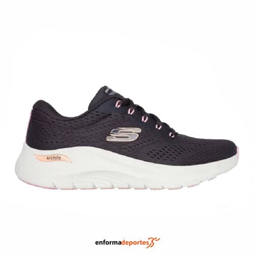 Zapatilla mujer SKECHERS ARCH FIT 2.0 -BIG LEAGUE, confeccionada en su parte superior de malla y cordones, con plantilla Skechers® Arch Fit® con soporte en el arco plantar certificado por podólogos, con plantilla extraíble se amolda a tu pie para reducir el impacto y mejorar la distribución del peso y suela flexible con tracción.
