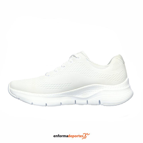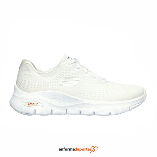 Zapatilla mujer SKECHERS ARCH FIT-BIG APPEAL, confeccionada en su parte superior de malla knit sin costuras, parte frontal con cordones y ojales bordados reforzados, ribete del cuello y el talón a juego o en contraste de colores, cuello y lengüeta acolchados, forro de tejido suave, sistema de plantilla Arch Fit con soporte en el arco plantar certificado por podólogos, plantilla de confort extraíble diseñada para mayor comodidad, diseño de media suela ligero con amortiguación y articulación flexible, suela con tracción flexible y talón de 3,8 cm.