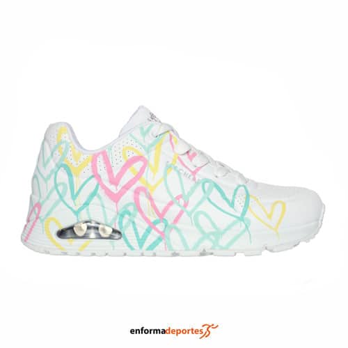 ZAPATILLA MUJER SKECHERS UNO – CHANGED LOVE | WHITE DURABUCK/ MULTI COL