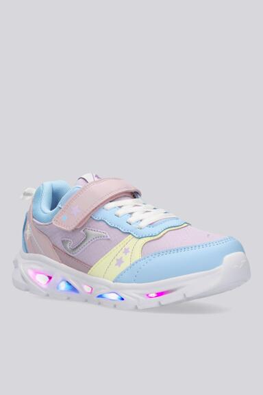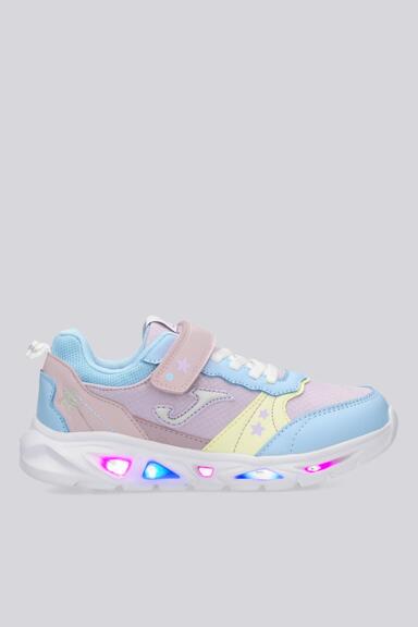 Las zapatillas de luces Joma Nova para niños destacan por su diseño divertido y funcional. Incorporan luces LED en la suela, que se activan con cada paso, proporcionando un toque lúdico y atractivo. El cierre de velcro con cordones elásticos facilita un ajuste rápido y seguro, idóneo para los más pequeños. La estructura de la zapatilla combina materiales sintéticos resistentes que ofrecen durabilidad y soporte.