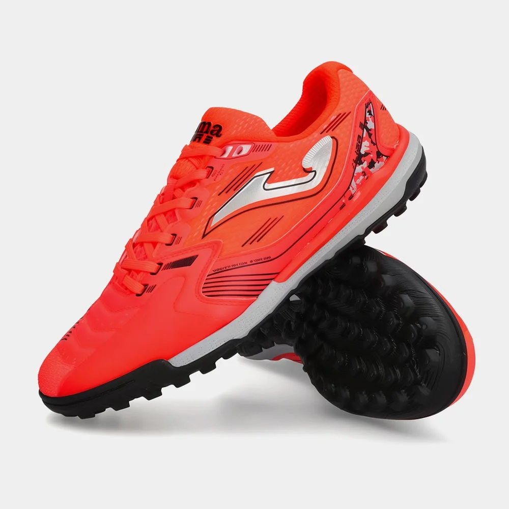 Zapatillas Joma Liga 5 Turf Hombre, diseñadas para fútbol en césped sintético. Upper ligero en piel sintética y mesh transpirable con tecnología VTS para mejor ventilación. Refuerzo PROTECTION en la puntera y mediasuela de phylon que brinda excelente amortiguación y comodidad. Suela de caucho DURABILITY con tacos multitaco para máximo agarre, tracción y estabilidad en superficies artificiales, con líneas FLEXO que aportan flexibilidad y movimientos naturales. Ideales para futbolistas exigentes que buscan rendimiento, control y durabilidad en cada partido o entrenamiento.