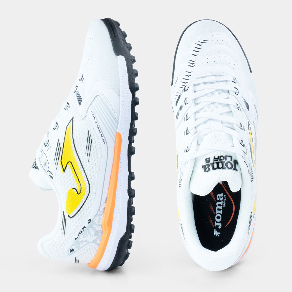 Zapatillas de fútbol diseñadas para turf, aptas para superficies sintéticas y moqueta. El modelo Liga 5 están diseñadas para entrenamiento y competencia ofreciendo un equilibrio confiable entre durabilidad, confort y control.