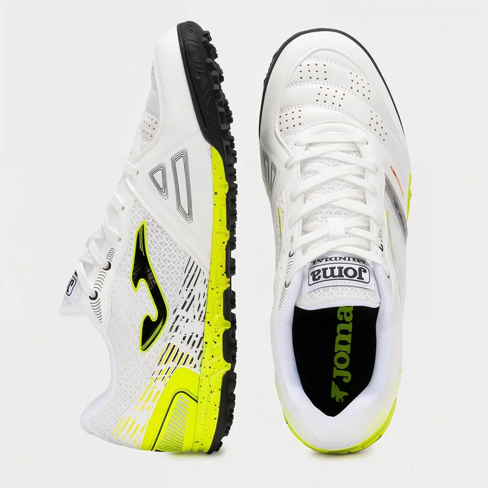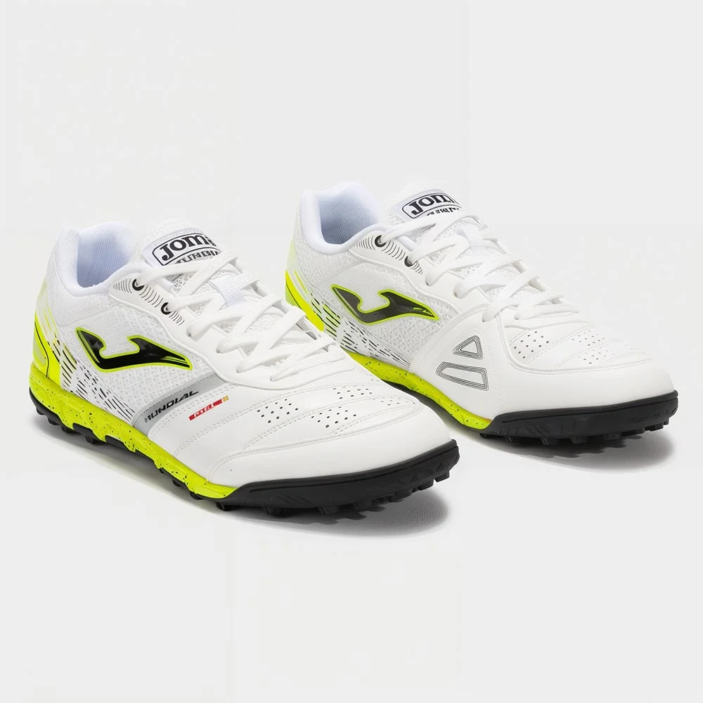 Zapatillas de futbol para cesped sintético Mundial Turf diseñadas para quienes buscan un calzado clásico con cuero de primera calidad que mejora el contacto con el balón, incluyen partes de malla y perforaciones con tecnología VTS para ventilación, puntera reforzada PROTECTION para mayor durabilidad, plantilla termoformada de EVA que absorbe impactos, entresuela de phylon flexible con ranuras que permiten una transición natural del talón al metatarso mediante tecnología FLEXO, y suela de goma DURABILITY resistente a la abrasión en superficies sintéticas.