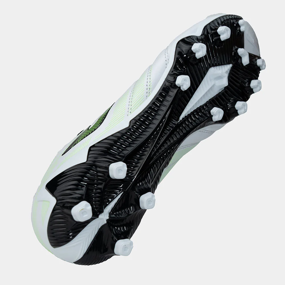 Chimpunes Powerful Firm Ground desarrolladas para jugar en césped natural firme. Cuentan con una parte superior de sintético tipo ONE PIECE que mejora la comodidad y adaptabilidad, junto con el sistema SOCK SYSTEM que ajusta el tobillo al pie para mayor flexibilidad. Incorporan el EXO COUNTER en el talón para brindar firmeza en cambios de dirección, y una suela de fibra sintética diseñada para controlar movimientos en terreno firme.