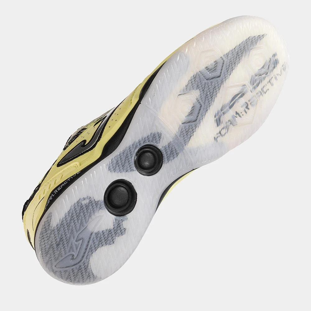 Las zapatillas de fútbol sala Joma FS Reactive han sido diseñadas para futbolistas que buscan tecnología avanzada y máximo rendimiento, destacando como uno de los modelos top del catálogo de futsal de la marca y testadas por jugadores profesionales como F. Valerio y Lucao. Su upper en piel proporciona durabilidad, flexibilidad, transpirabilidad y un excelente contacto con el balón, reforzado con el sistema de ventilación VTS. Incluyen refuerzo PROTECTION en la puntera para mayor resistencia. La mediasuela combina phylon de alta densidad en la parte superior para más estabilidad y FOAM REACTIVE en la zona trasera, que absorbe impactos y aporta confort en cada pisada. La suela de caucho DURABILITY, resistente a la abrasión y no marcadora, asegura un gran agarre en superficies indoor, mientras que la estructura ROTATION favorece giros y cambios de dirección rápidos.