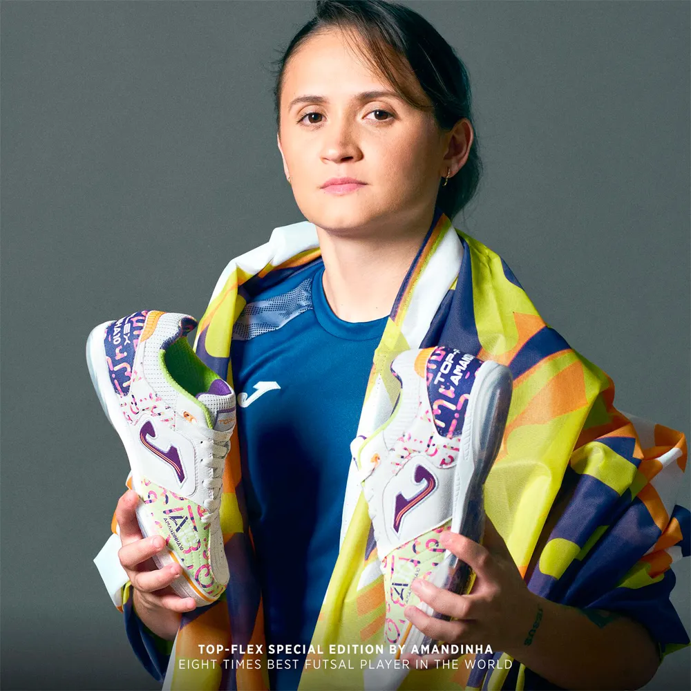 ¡Llegó la edición especial de las zapatillas de fútbol sala personalizadas para Amandinha! El modelo más emblemático del fútbol sala de Joma, con más de 30 años de historia, sigue marcando la diferencia en las canchas. Un clásico reconocido por su calidad, tecnología, flexibilidad y comodidad, que continúa siendo la elección de grandes profesionales como Amandinha, ocho veces nombrada la mejor jugadora del mundo.