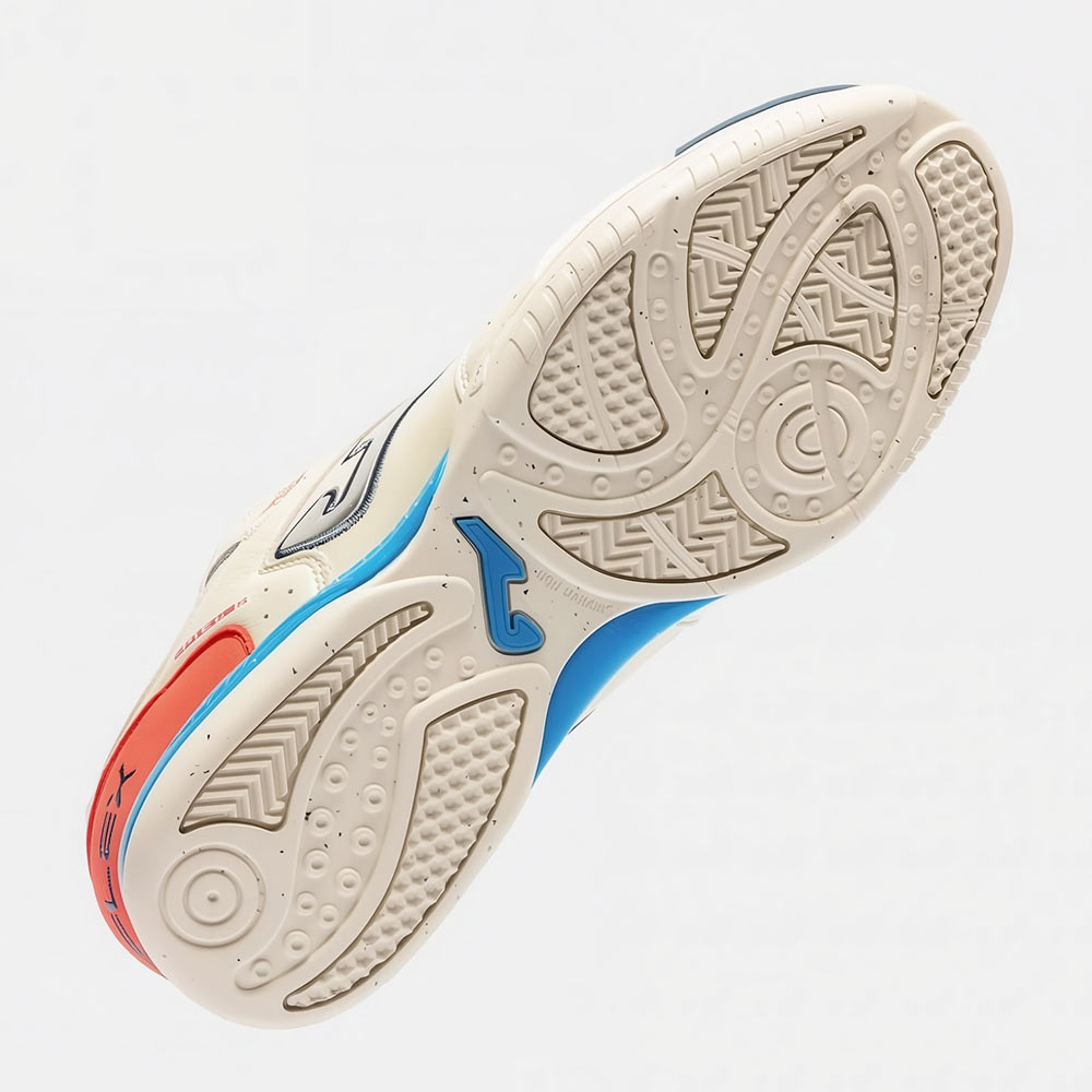 La suela de caucho DURABILITY ofrece una alta resistencia a la abrasión y se adhiere con seguridad a superficies indoor sin dejar marcas en la cancha.