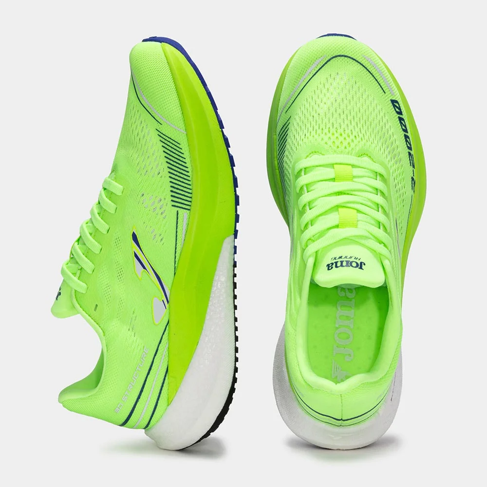 Upper súper ligero y transpirable acabado en Jacquard. Las perforaciones VTS aseguran la ventilación del sudor, de manera que el pie se mantiene a temperatura constante en todo momento. Sistema de ajuste termosellado JOMA SPORTECH, que sujeta el pie sin añadir peso.