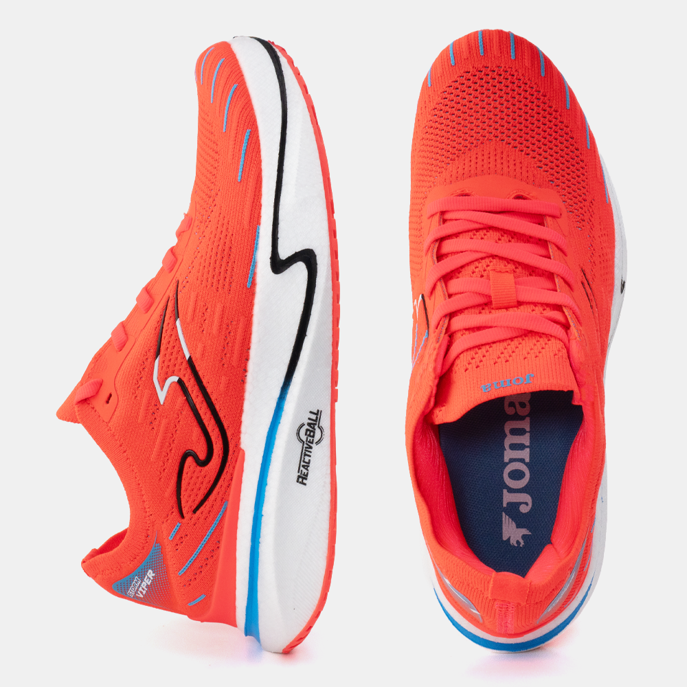El upper está confeccionado en mesh con acabado Jacquard personalizado. Incorpora el sistema de perforaciones VTS, que mejora la ventilación y mantiene el pie a una temperatura estable. El ajuste termosellado JOMA SPORTECH aporta sujeción precisa sin añadir peso. Además, la lengüeta acolchada va unida al corte para un confort superior.