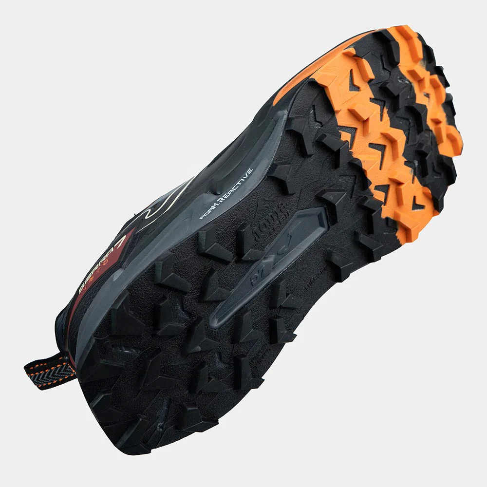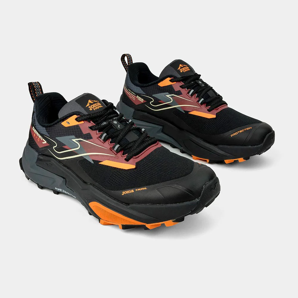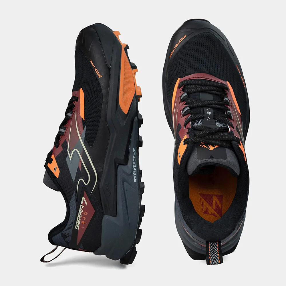 Las zapatillas de trail running para hombre Sierra han sido renovadas para ofrecer un plus de amortiguación y estabilidad en terrenos técnicos, con una horma ancha que brinda mayor comodidad en la zona de los dedos durante las bajadas. Su upper en mesh transpirable con acabado Jacquard incorpora el sistema VTS para una ventilación óptima, mientras que el termosellado sin costuras JOMA SPORTECH asegura un ajuste ligero y preciso. Los refuerzos PROTECTION en puntera y laterales protegen frente a impactos y evitan la entrada de elementos externos. La mediasuela con tecnología FOAM REACTIVE aporta una excelente absorción de impactos y suaviza la pisada, combinada con phylon más estable en la parte delantera para mayor control. La suela de caucho DURABILITY con tacos de agarre garantiza tracción, estabilidad y resistencia en superficies de montaña y caminos exigentes.