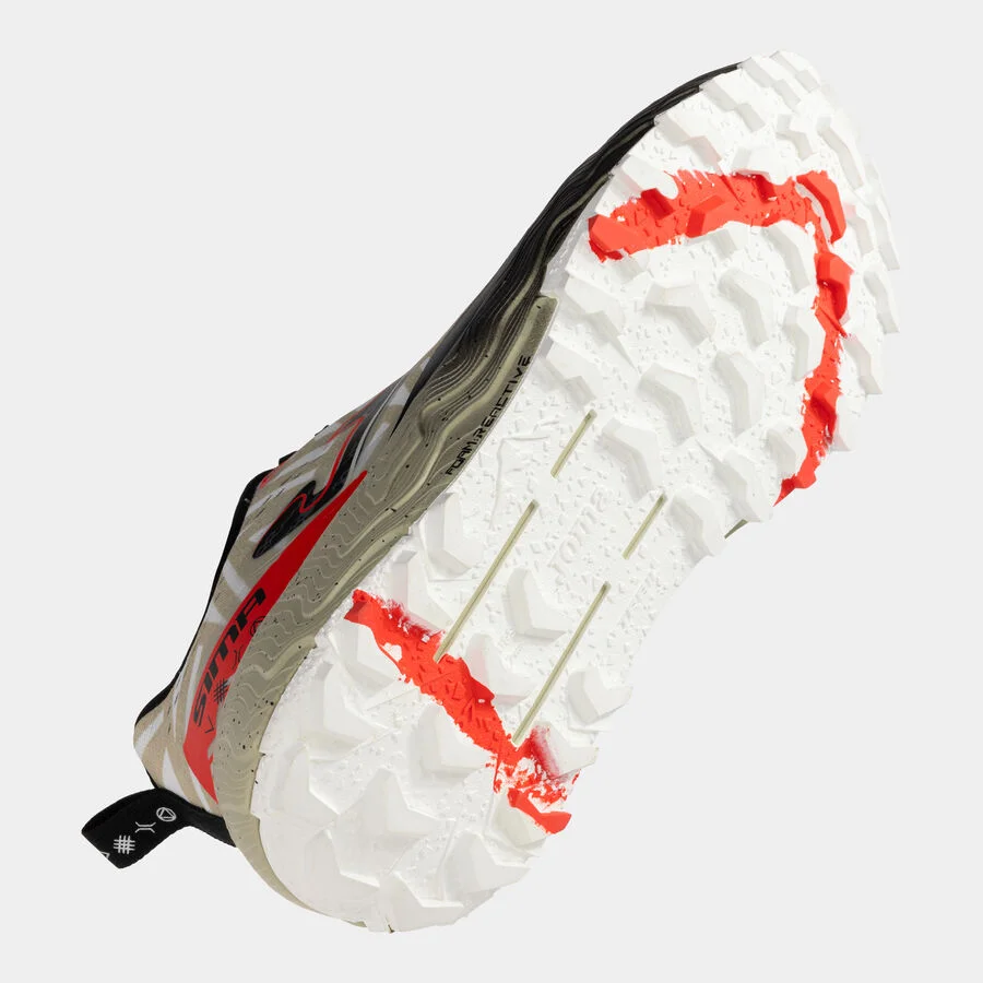 La mediasuela, con un drop de 7 mm, está compuesta por una sola pieza de FOAM REACTIVE, un material que absorbe eficazmente los impactos y reduce la vibración en cada pisada, mejorando la sensación de confort en terrenos mixtos.