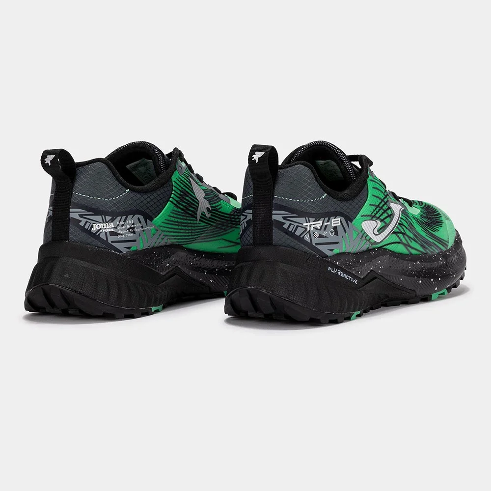 Las zapatillas de trail running unisex TR-8 son una incorporación pensada para competición en maratones, diseñadas para ofrecer el máximo rendimiento a corredores de larga distancia en terrenos de dificultad media. Su upper de mesh transpirable con acabado Jacquard incorpora microperforaciones VTS para mantener el pie fresco, mientras que el sistema termosellado JOMA SPORTECH asegura un ajuste ligero y preciso. Los refuerzos PROTECTION en puntera y laterales aportan durabilidad y protección frente a impactos. La mediasuela con drop de 7 mm combina dos materiales: en la parte trasera FLY REACTIVE, que proporciona amortiguación reactiva y retorno de energía, y en la parte delantera phylon, que suma estabilidad a cada zancada. Finalmente, la suela de caucho DURABILITY con tacos de agarre está optimizada para terrenos de dificultad media-técnica, garantizando tracción, control y seguridad en carreras de larga distancia.