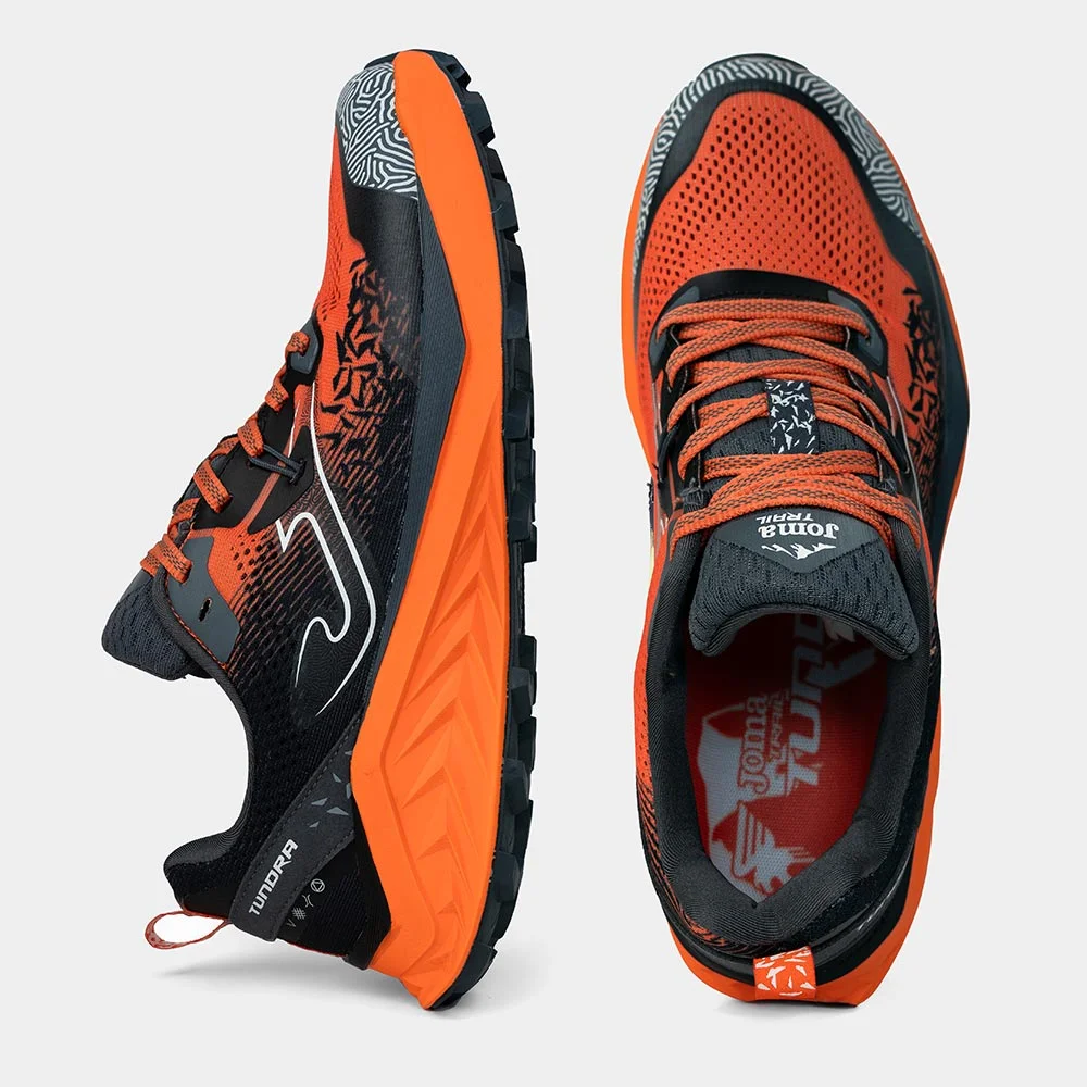Las zapatillas de trail running para hombre Tundra han sido diseñadas para entrenamiento, ofreciendo versatilidad, amortiguación y un agarre seguro para dominar senderos de baja dificultad. Su upper combina mesh técnico transpirable con el sistema VTS que mantiene el pie fresco, mientras que el termosellado sin costuras JOMA SPORTECH asegura un ajuste cómodo y ligero. La puntera reforzada con PROTECTION incrementa la durabilidad, y la mediasuela de phylon aporta ligereza, flexibilidad y absorción de impactos, con horma ancha para mayor confort. La suela de caucho DURABILITY con tacos de doble dirección garantiza tracción y estabilidad en terrenos fáciles y moderados.