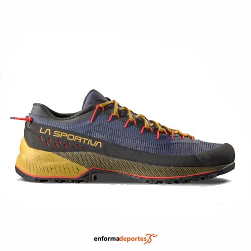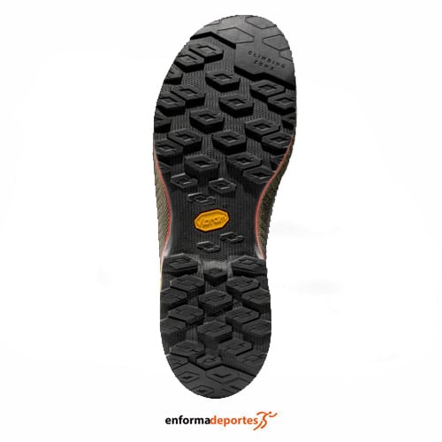 Zapato hombre LA SPORTIVA TX4 EVO, confeccionada en su parte superior de piel de ante + borde protector de goma y puntera protectora de goma, con recubrimiento de malla, con plantilla Ortholite Enfoque Híbrido 4 mm, con entresuela de compresión EVA, suela Vibram MegaGrip con SII, Resole Platform – Impact Brake System, con tejido protector aplicado en la parte media delantera de la cuña para protegerla de la abrasión.