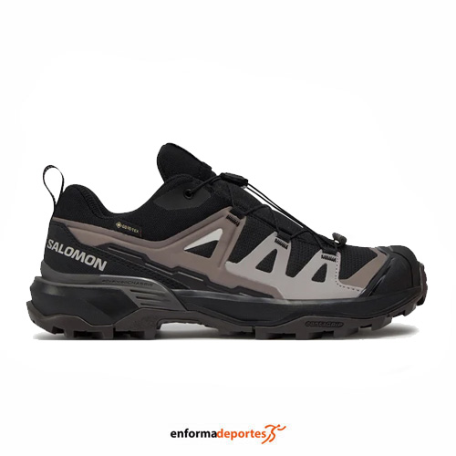 Zapato mujer SALOMON X ULTRA 360 GTX, ligera y cómoda, con upper de construcción robusta, resistente y bien reforzado, con mmbrana Impermeable Gore-Tex que mantiene tus pies secos, con Advanced Chassis que optimiza la estabilidad, con entresuela Energy Cell de EVA de doble densidad de buena amortiguación, puntera muy reforzada para proteger los dedos en los terrenos más técnicos, con plantilla extraíble Ortholite que permite la transpiración del pie y previene el mal olor, con cierre con cordones Quick Lace para un ajuste rápido y perfecto, con suela Contagrip MA de tacos todoterreno y una adherencia a prueba de resbalones.